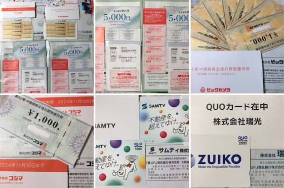 ビックカメラ4名義 8,000円、コジマ2名義 2,000円、サムティ隠れ優待2名義 2,000円、瑞光1名義 2,000円、AFC2名義